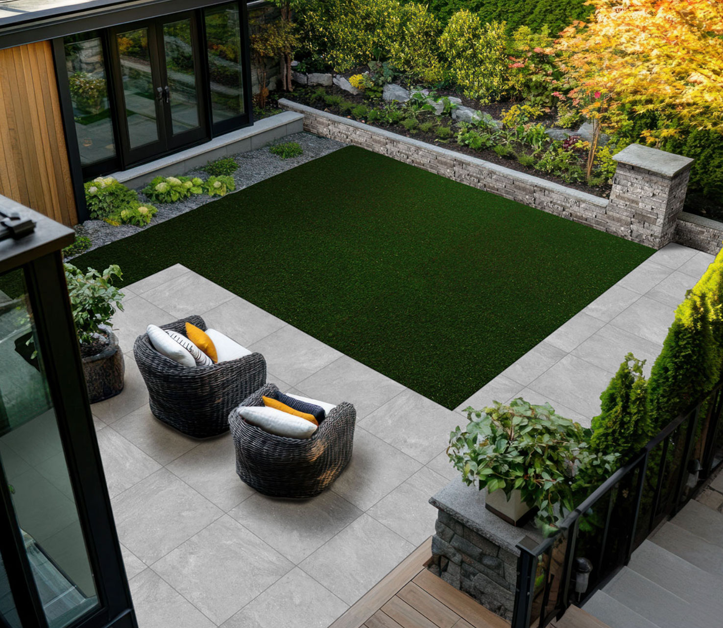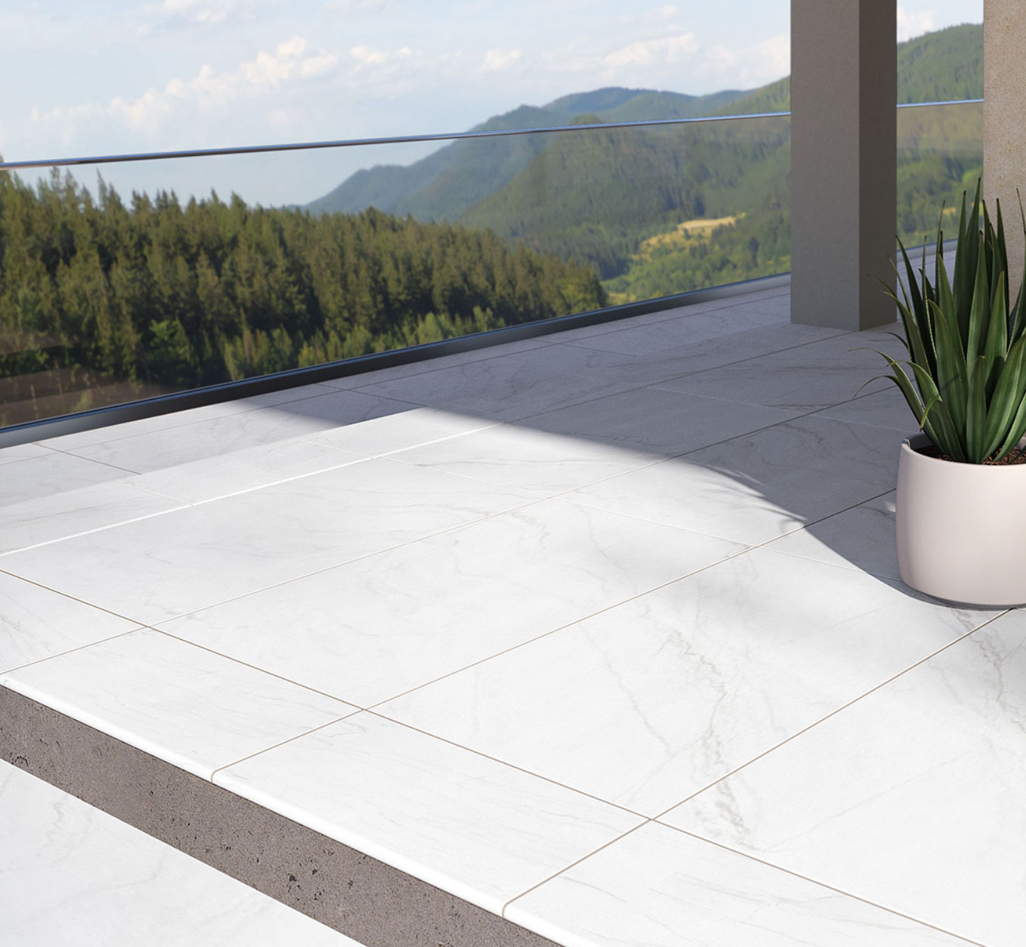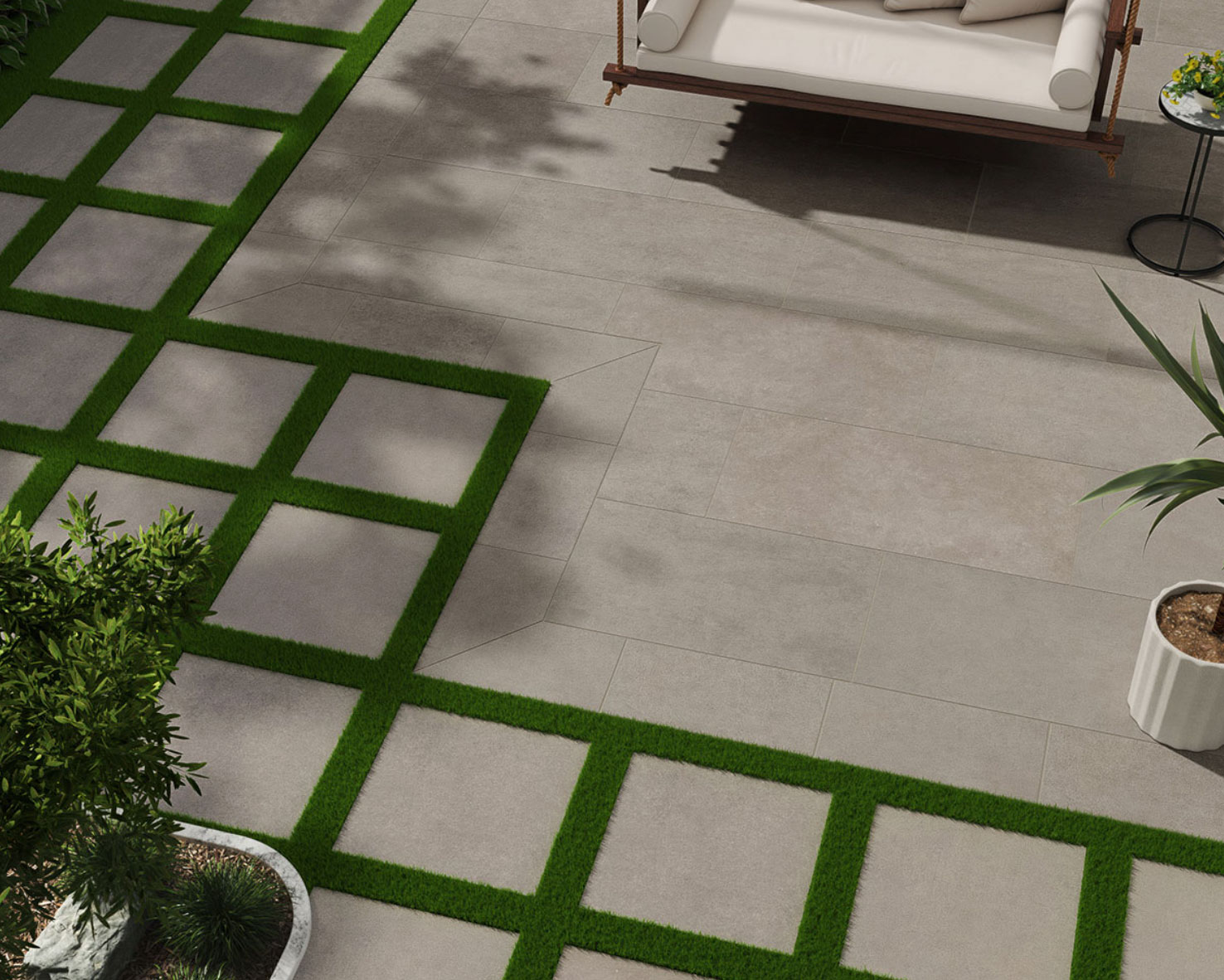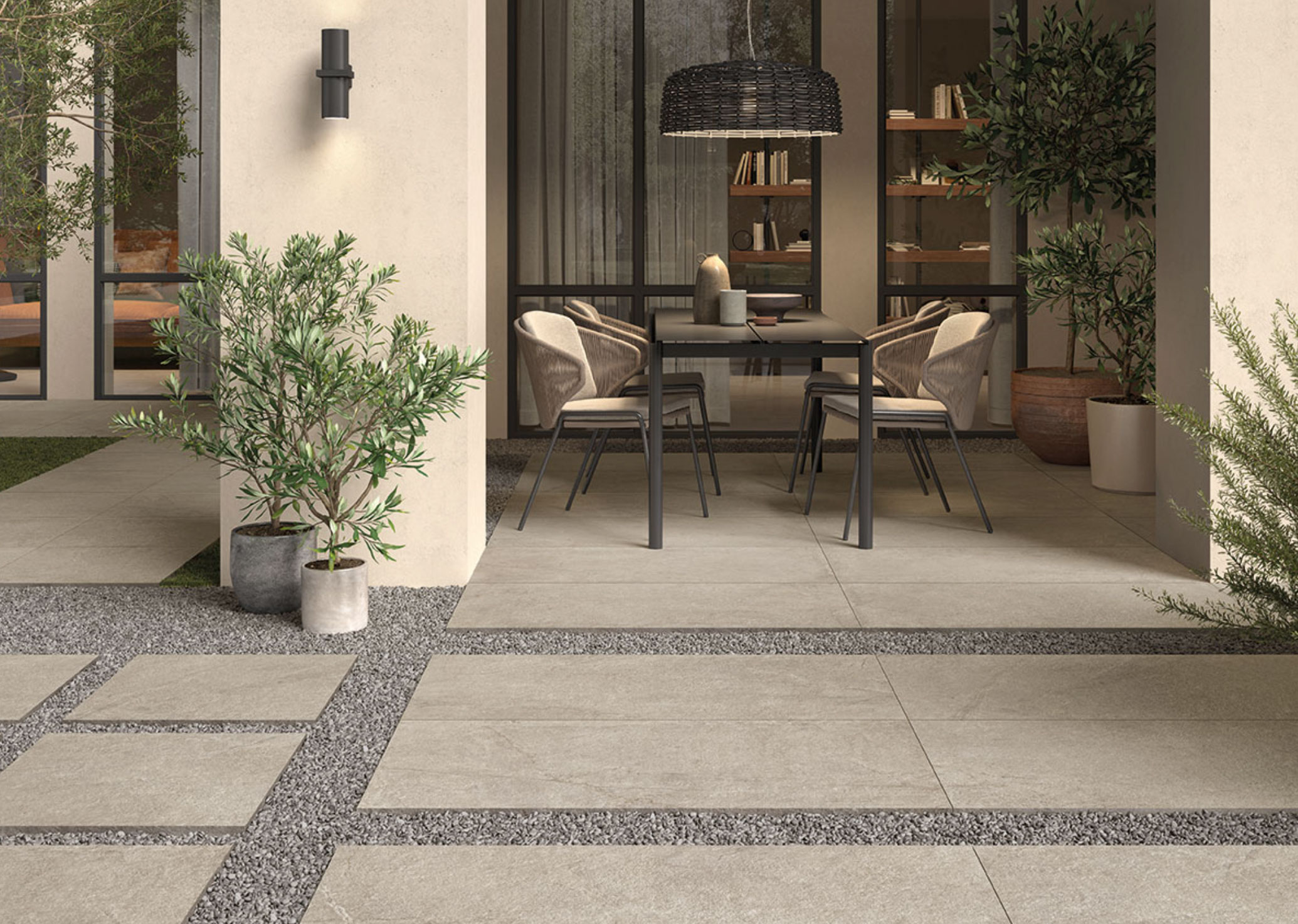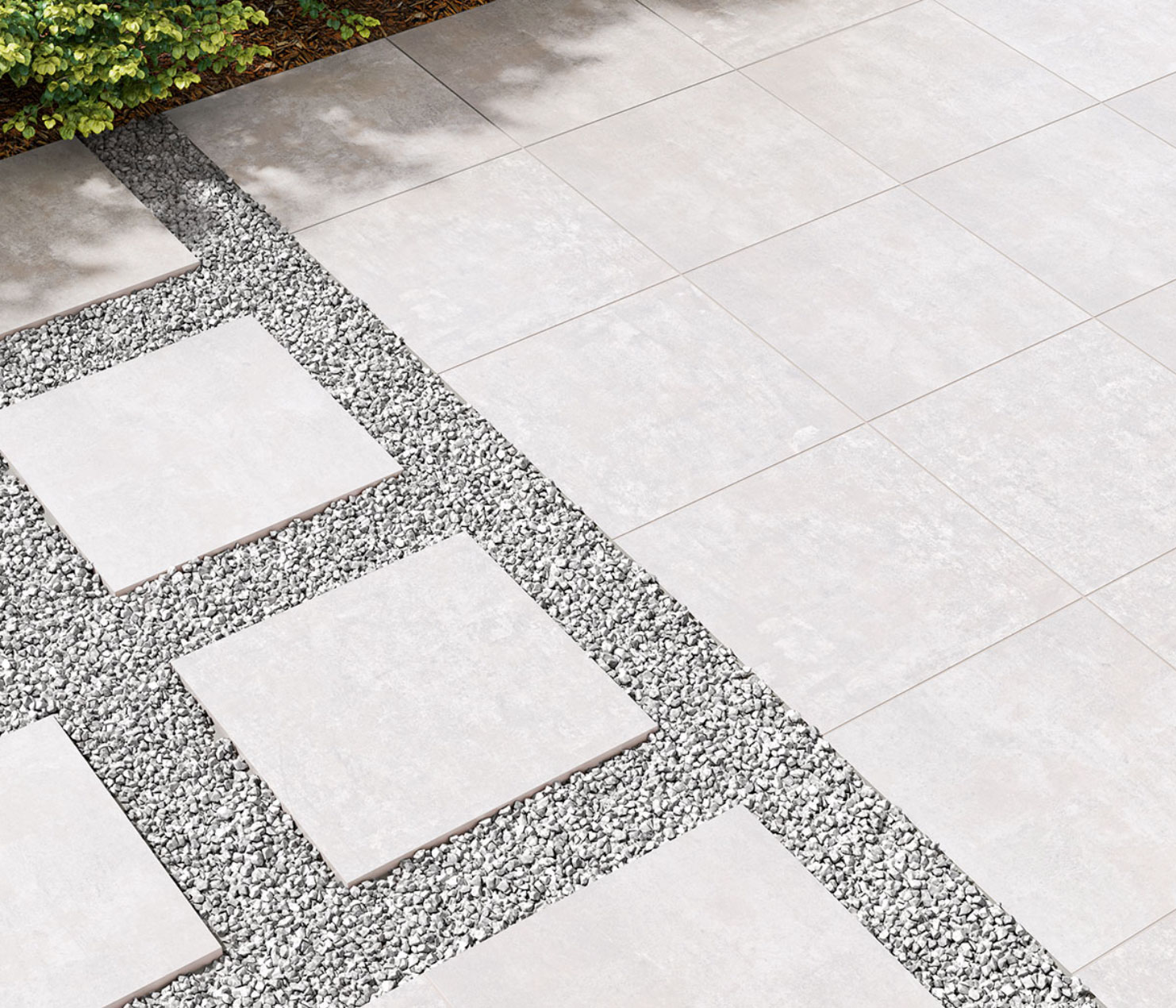 Livingstyle porcelain pavers in several tones feature a subtle pattern reminiscent of natural stone and are suitable for a wide range exterior design projects.