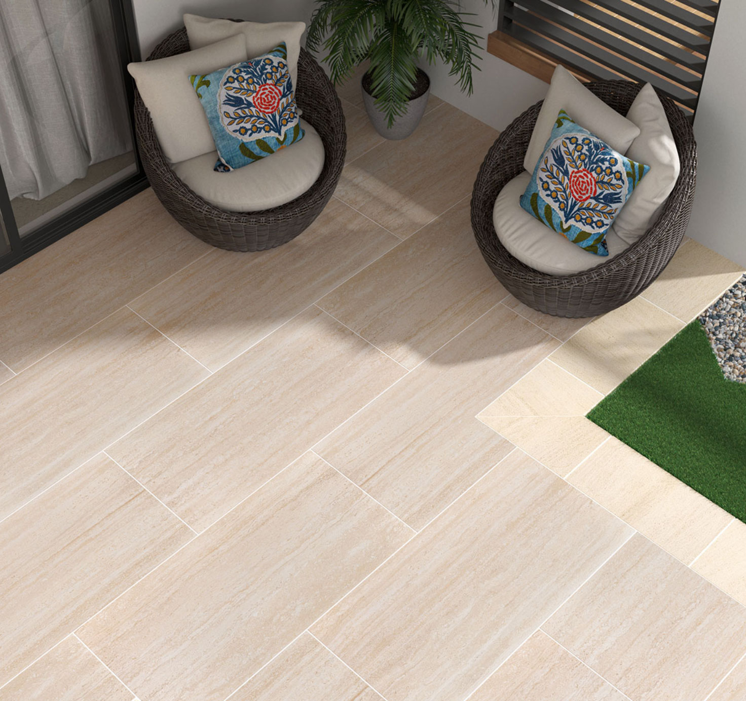 Spruce up your exteriors with Soreno porcelain pavers available in two large format sizes, making them the perfect choice for creating a welcoming patio, pool surround or outdoor walkway.