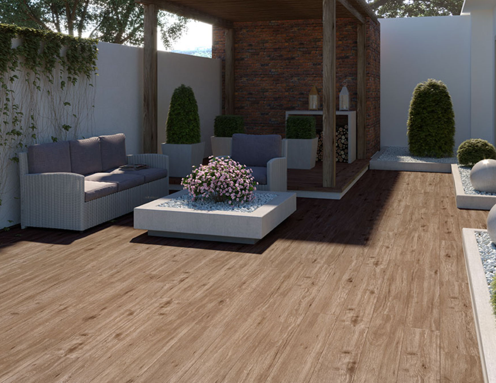 The Caldera porcelain pavers on-trend wood-look finish enhance the beauty of a floor, wall, patio, or garden in commercial and residential areas.