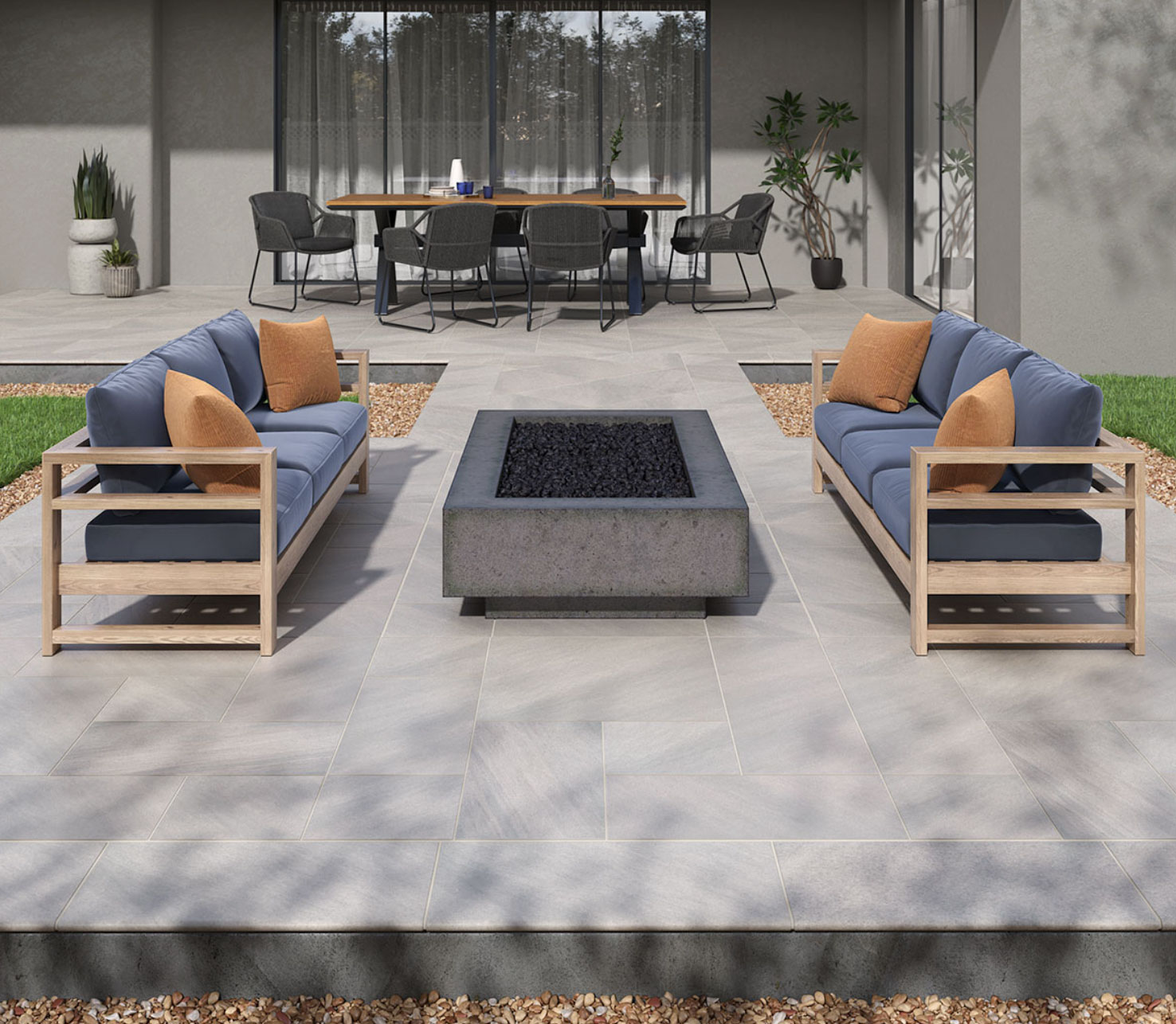 Bluestone pavers offer understated elegance with a deep blue-grey palette and flattering matte finish. This modern-day porcelain paver looks like natural bluestone with an authentic feel but has the easy care and durability of porcelain tile.