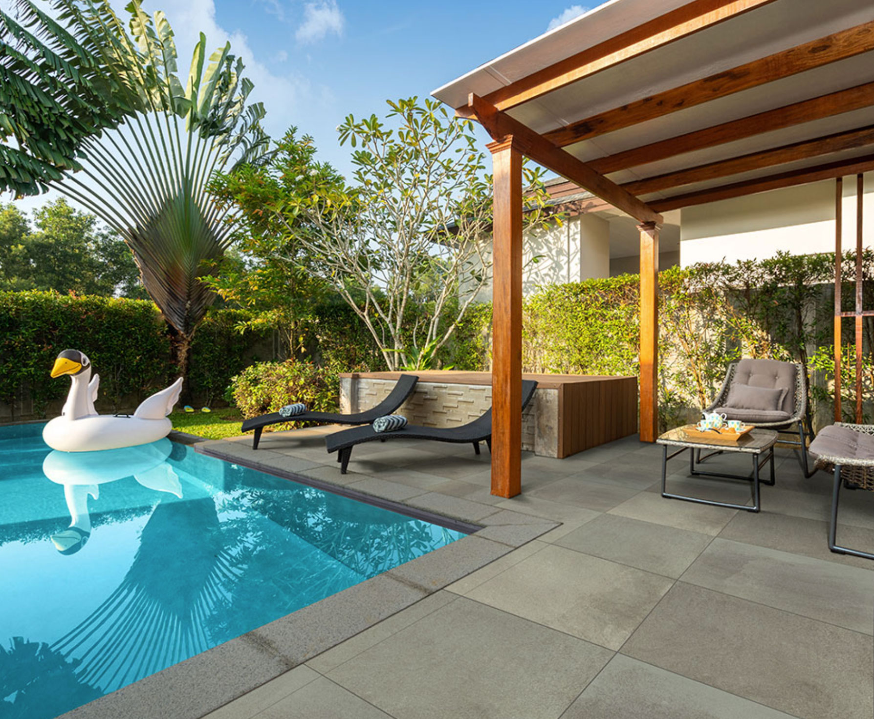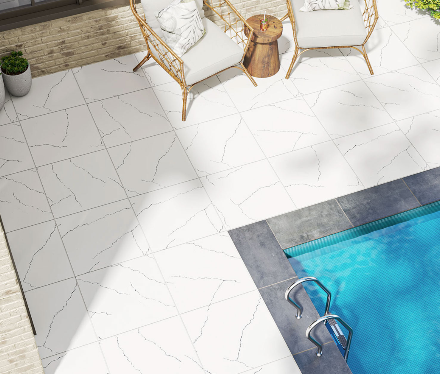 These durable, easy to clean and low maintenance porcelain pavers are the perfect choice for pool decks, patios, outdoor kitchens, and wandering pathways.