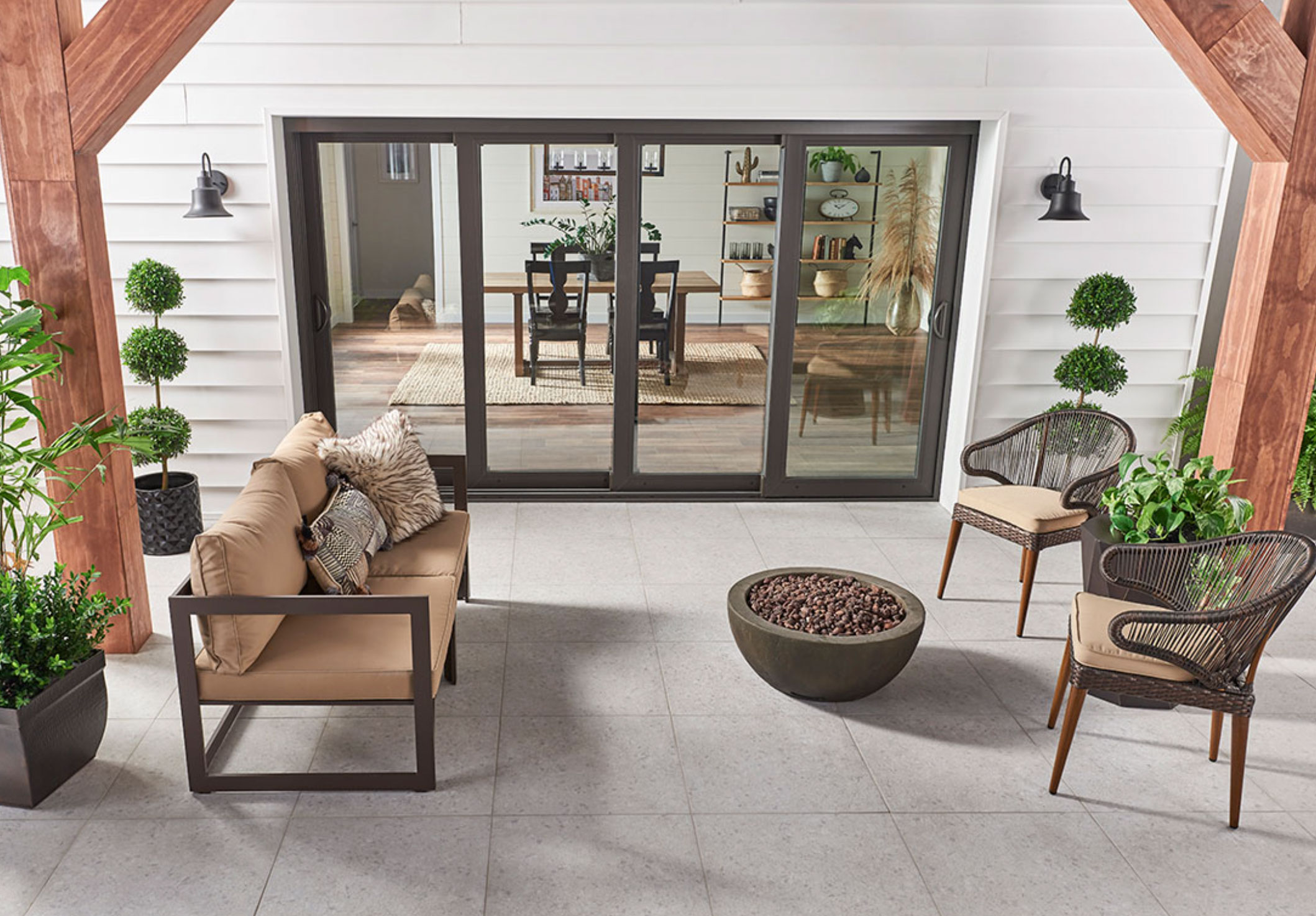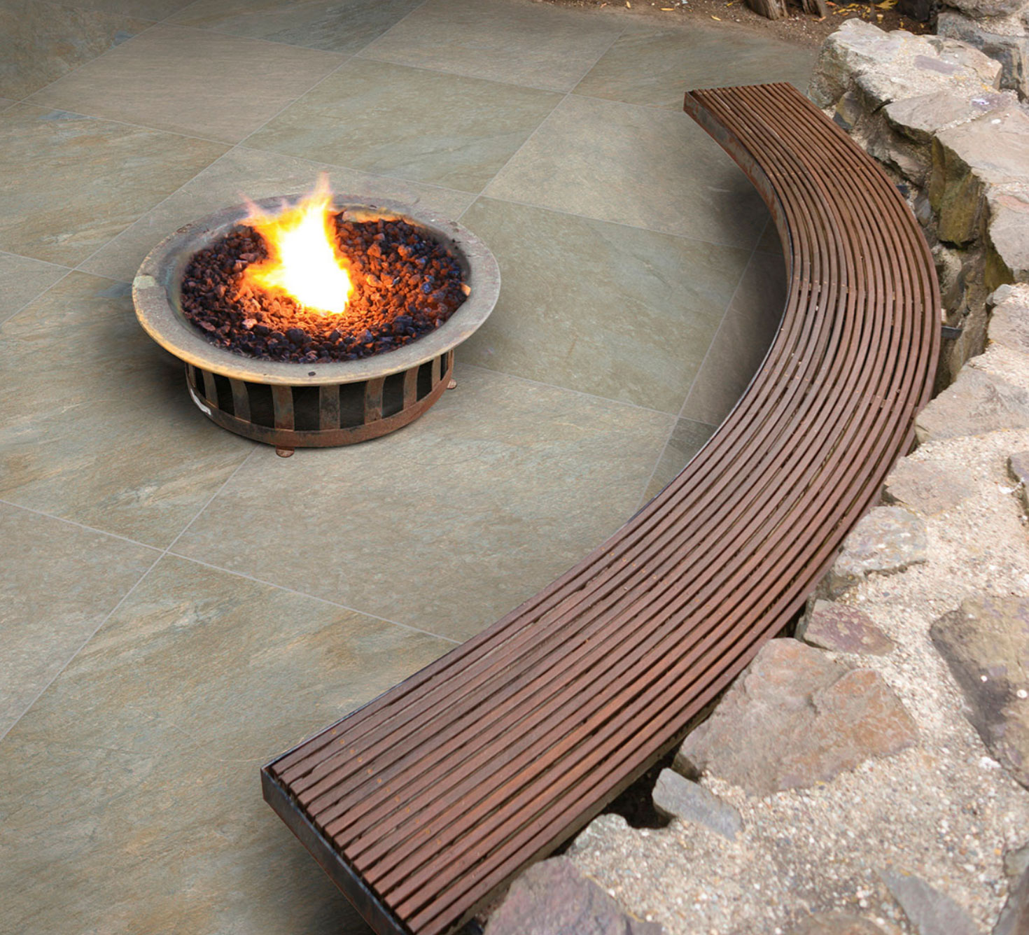 Achieve a warm and welcoming outside environment with Nolitan porcelain pavers featuring neutral color tones for a natural stone look to complement various hardscaping design styles.