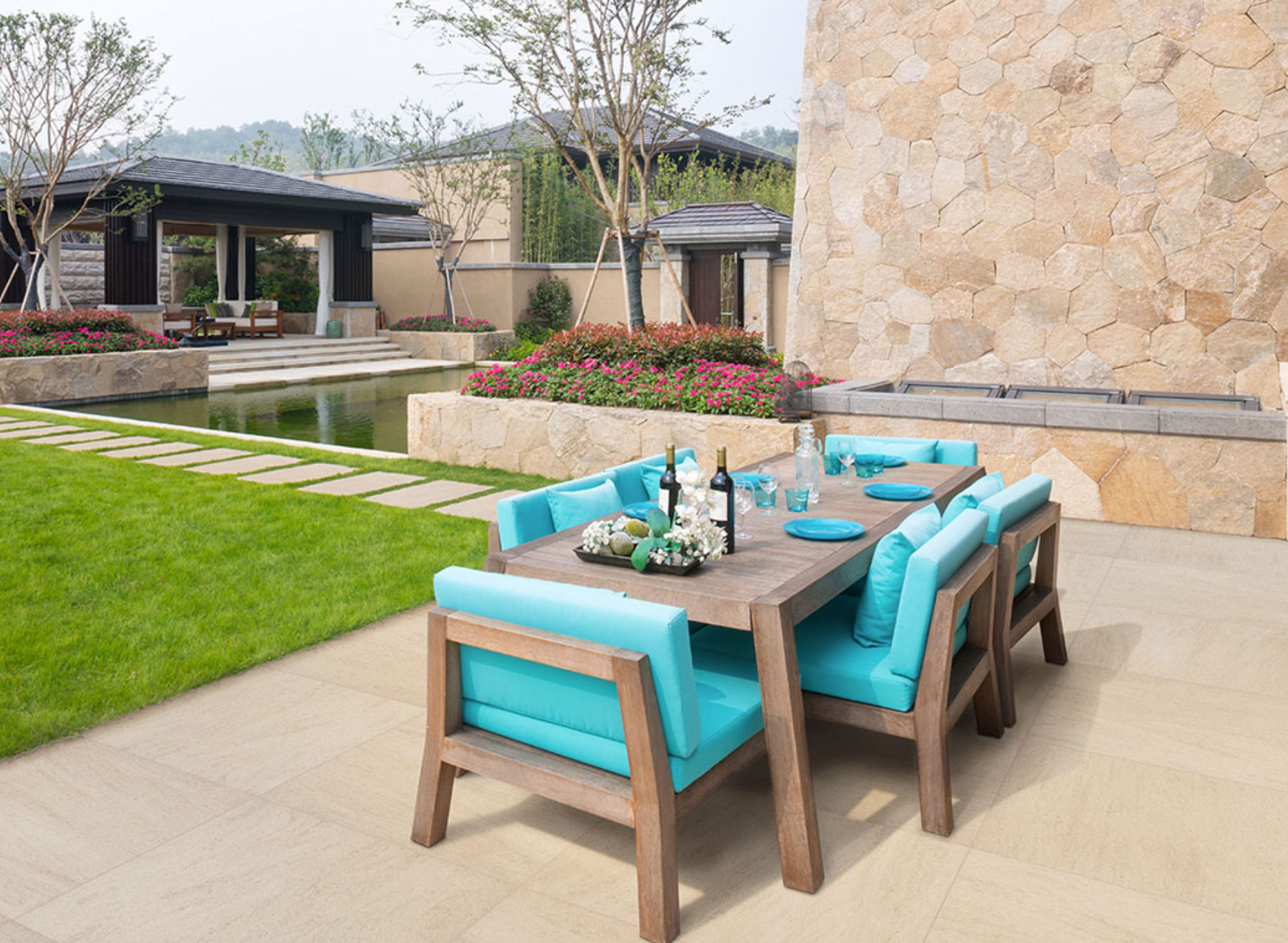 Step into luxurious outdoor sanctuaries with Cordova pavers, effortlessly merging artistic finesse and cutting-edge 3D technology to encapsulate the everlasting charm of travertine-inspired porcelain.