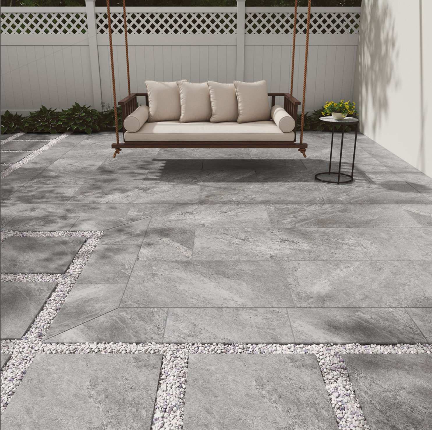 The subtle pattern and design of these durable porcelain pavers makes them perfect for patios, walkways, floors, and other architectural design features.